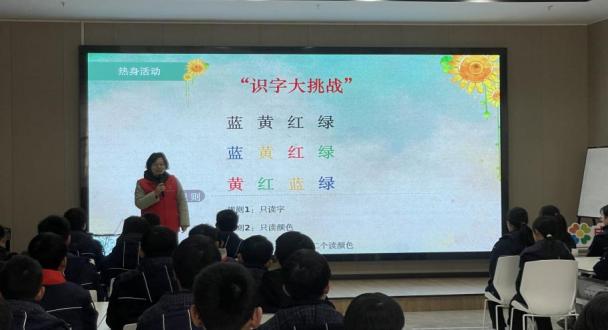 此次团体辅导以游戏为主,首先进行的是“识字大挑战”。看着简单的文字,同学们都跃跃欲试,争先恐后举手挑战,课堂氛围逐渐升温,场面十分热烈。在充满趣味的挑战后,向老师邀请同学们分享收获,有的说:“每个人的构思都是独一无二的”;有的说:“与人交往时需要说清楚,避免产生误会”。趣味游戏既能培养同学们的反映能力又能提高她们的专注力。