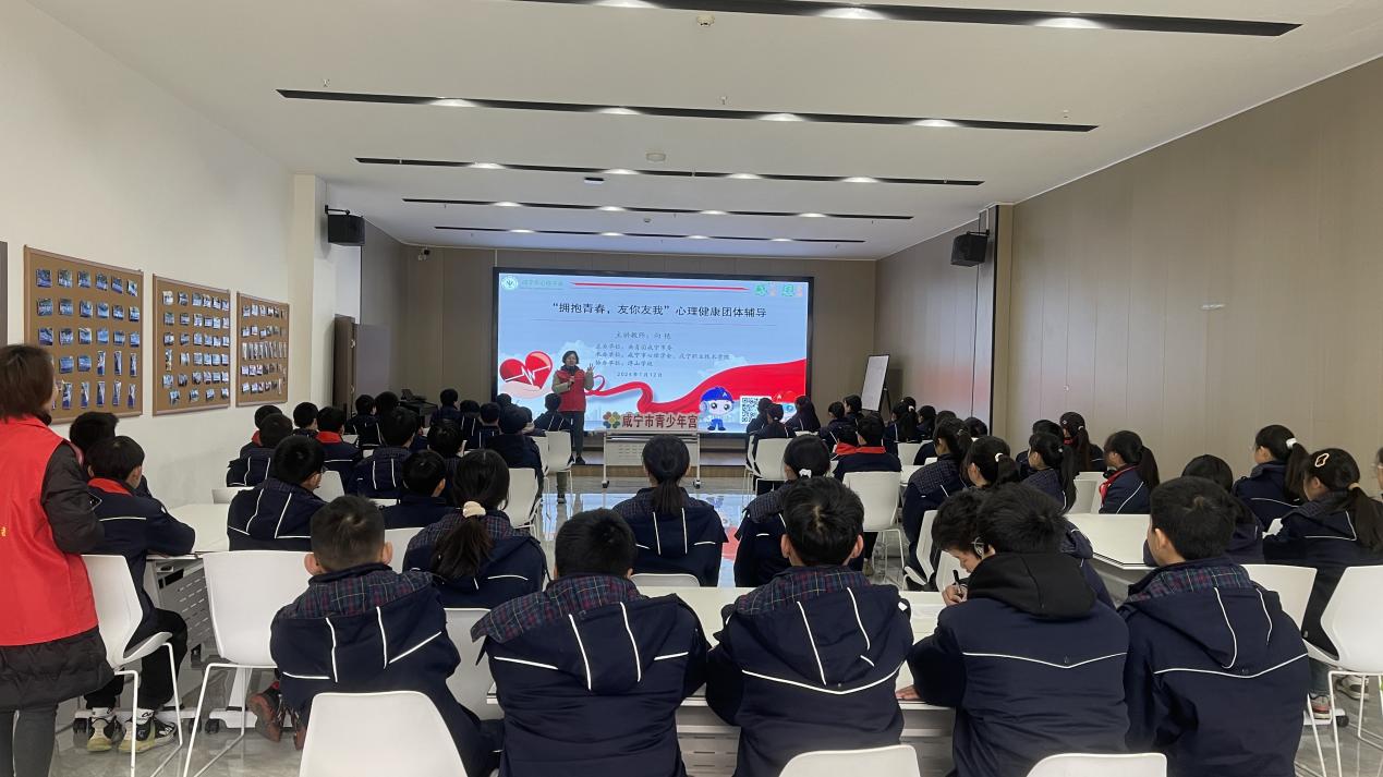 2024年1月12日,以“拥抱青春,友你友我”为主题的心理健康团体活动在咸宁市青少年宫举办。咸宁市心理学会秘书长、国家二级心理咨询师向艳老师主讲,共50多名学生参加。
