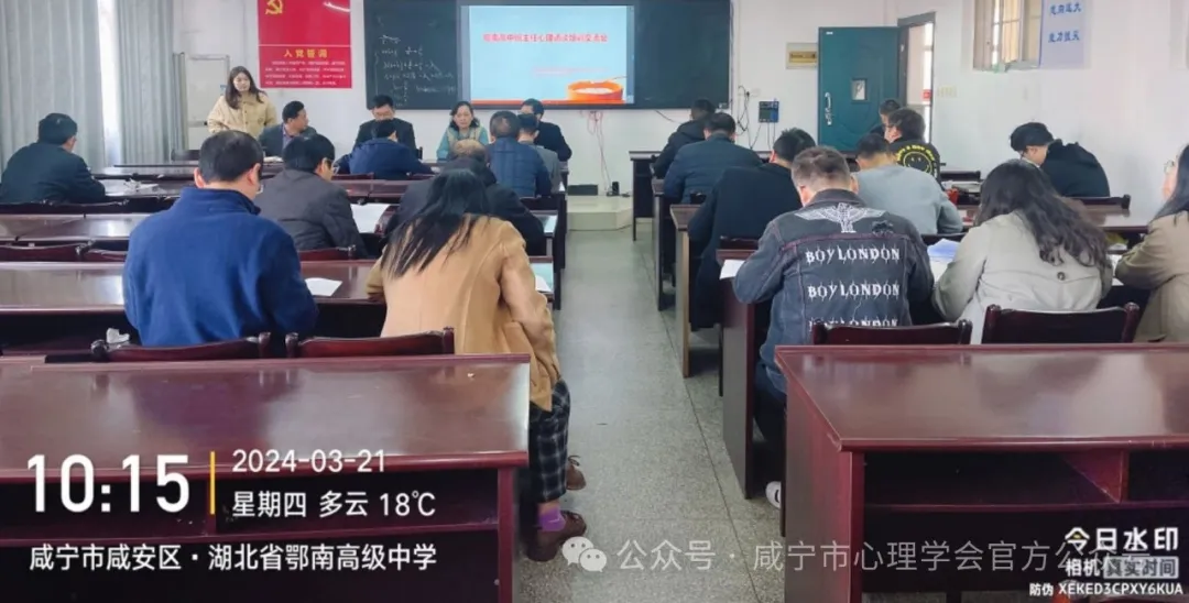 为了提升班主任心理健康教育方面的专业素养,3月21日,在鄂南高级中学针对心理健康访谈的重要性进行培训,本次培训邀请咸宁市心理学会副会长、中国心理学会注册心理师、湖北科技学院副教授杨孝主讲。鄂南高级中学高一年级班主任20余人到场聆听。