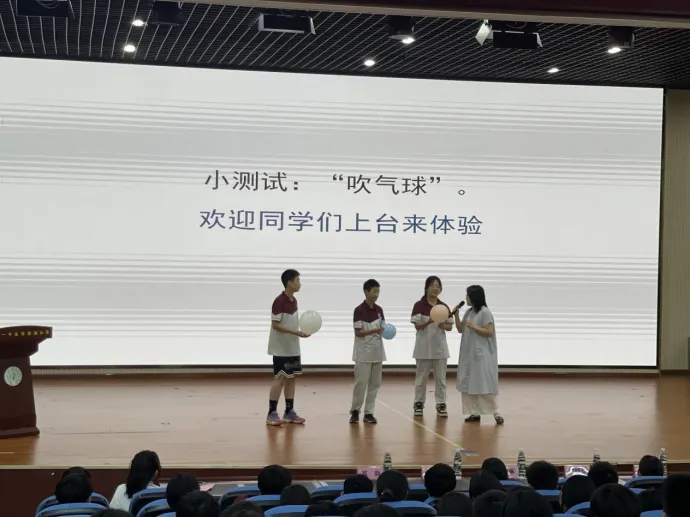 讲座中,邵老师鼓励同学将心中的压力想象成气球中的空气,用力吹气球就如同释放内心的压力。