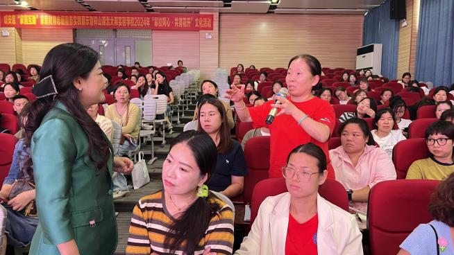 台下家长也积极互动,一位家长表示:“孩子是我们的独立个体,需尊重信任,而非替他们做决定。”