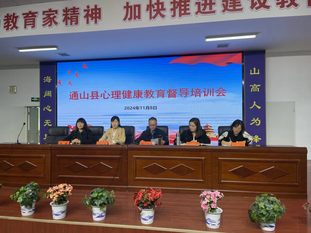 2024年10月31日,“通山中小学心理健康工作督导培训”在通山县实验高级中学慧真楼三楼报告厅开展。咸宁市教育局基教科副科长刘文慧,通山县教育局教育股负责人陈才添,通山县实验高级中学副校长杨文丽,国家注册心理师、咸宁职业技术学院心理健康教育中心副教授黄霞,咸宁市心理学会秘书长向艳出席本次活动。通山县中小学分管心理教育工作副校长、专兼职心理健康教师、班主任近120人到场参加培训。