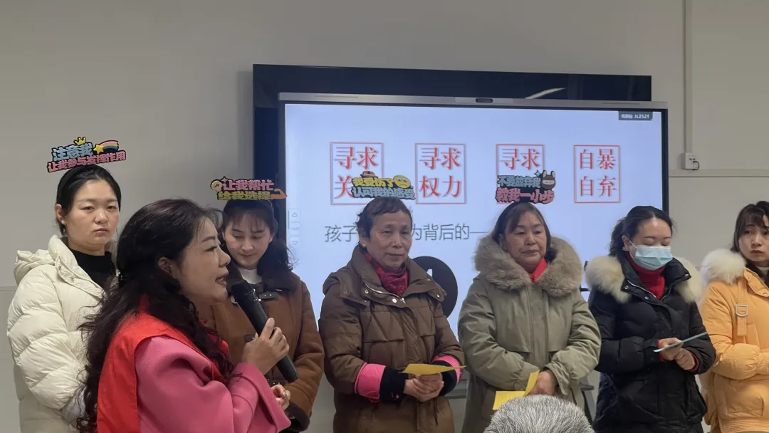 活动现场,张雯老师通过角色扮演、游戏互动等方式,激发家长们的参与热情。同时,结合实践案例,模拟情景,指导家长们了解孩子不当要求后面的真实想法,帮助家长学会倾听孩子的心声,尊重孩子的想法,用平等、尊重的态度与孩子交流。讲座结束后,张雯老师还与家长们进行了互动交流,耐心解答了家长们在家庭教育中遇到的困惑和难题。
