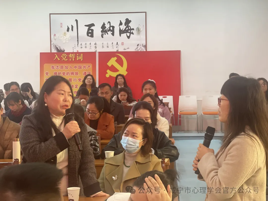 培训现场设有答疑环节,老师们积极参与,分享教学中遇到的困惑。有老师提到,面对学生复杂的心理问题,难以精准判断问题的严重程度,有效处理危机事件;还有老师希望了解,如何在班级中开展更具吸引力和实效性的心理健康教育活动。边教授结合实际案例,对这些问题进行了细致的解答,为老师们提供了切实可行的方法与策略,让老师们受益匪浅。培训结束后,个别学校参与了学校心理工作研讨,围绕学校学生心理健康工作的开展情况进行了交流和分享,进一步深化了对学校心理健康工作的认识与理解。