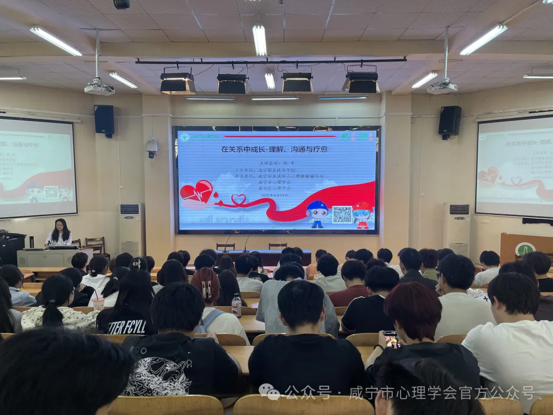 4月23日中午,“在关系中成长-理解、沟通与疗愈”心理健康专题讲座在咸宁职业技术学院顺利举办。本次活动作为咸宁市心理学会为会员单位提供的定制化服务项目,由学会主办,更有咸宁市心理学会科技志愿服务队成员倾力协助,吸引了咸宁职业技术学院大一大二近150位学生踊跃参与。另外,由咸宁市心理学会副会长杨孝教授担任主讲嘉宾。