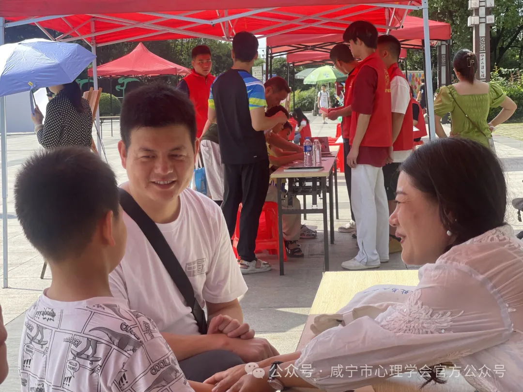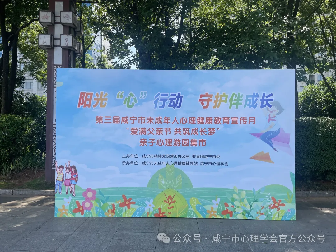 6月14日上午,由咸宁市文明办、共青团咸宁市委主办,咸宁市未成年人心理健康辅导站、咸宁市心理学会承办的“爱满父亲节 共筑成长梦”亲子心理游园集市活动,在十六潭公园热闹开展,咸宁市心理学会科技志愿服务队近50人全程参与活动组织与引导,以“游戏化”方式推动未成年人心理健康教育与亲子关系建设,近300组家庭在温馨氛围中度过父亲节。