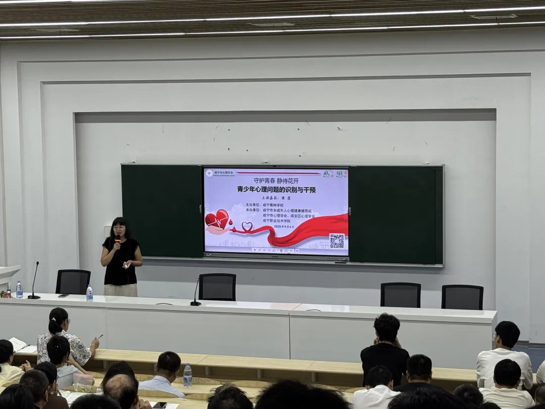 9月4日,一场以“守护青春 静待花开—青少年心理问题的识别与干预”为主题的讲座在咸宁青林学校成功举办。特别邀请咸宁市心理学会专业讲师黄霞主讲,该校近100名教师到场聆听。